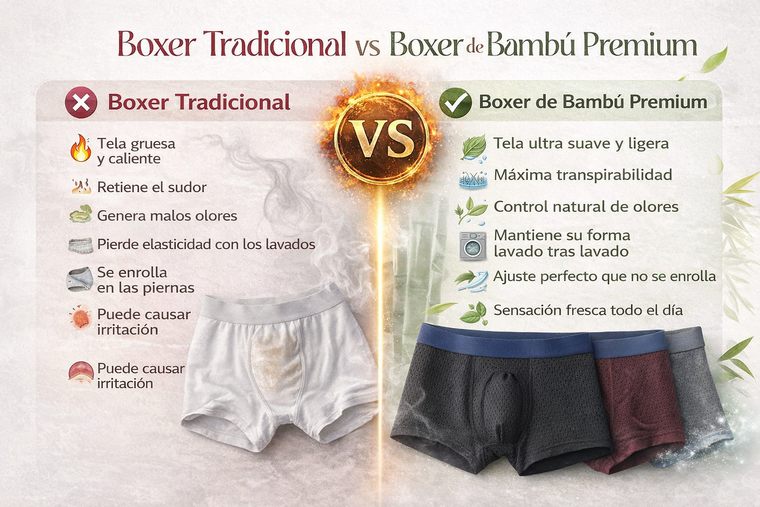 Boxer Tradicional vs Boxer de Bambú Premium